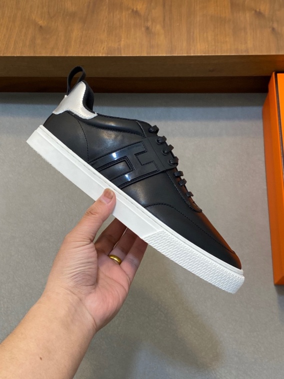 Nowe w kartonie, trampki Hermes wykonane ze skóry licowej, wzbogacone o modne bloki kolorów. Klasyczny okrągły nosek i płaska podeszwa nadają im elegancki, biznesowy charakter, a sznurowane wykończenie zapewnia wygodę i uniwersalność. Idealne na sezon wiosna/jesień – lekkie, stylowe i pasujące zarówno do codziennych, jak i bardziej formalnych zestawów.