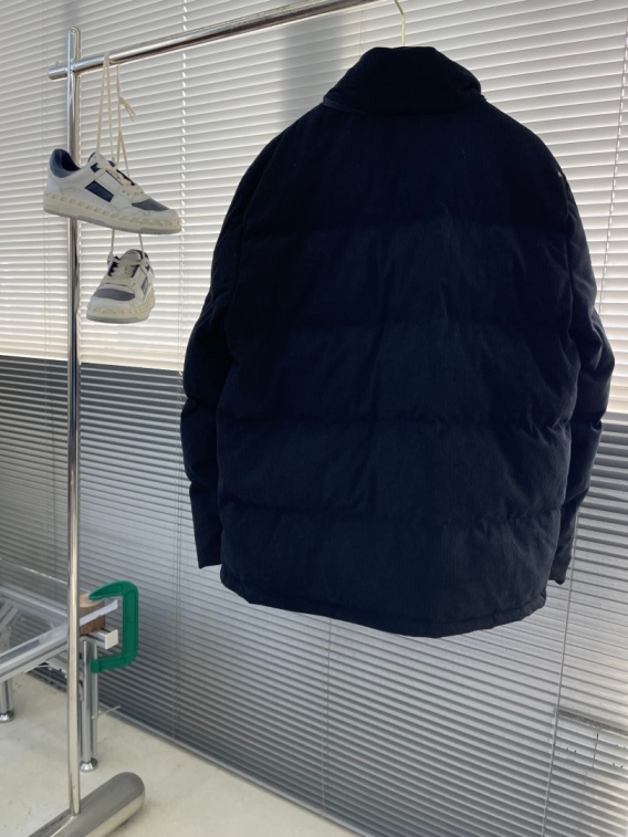 Męska kurtka puchowa Burberry London w kolorze granatowym, z kontrastowym białym sztruksowym kołnierzem typu stójka. Krótki fason, wypełnienie z puchu gęsiego, standardowa grubość i wiatroszczelna konstrukcja sprawiają, że to idealny wybór na chłodne dni. Styl dopasowany do miejskiego rytmu – dojazdy, codzienne aktywności, elegancki casual.